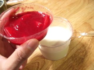 ひっくり返した釜?に入っていたのはなぜかフルーツポンチ。懐かしいな、小学生の給食か。