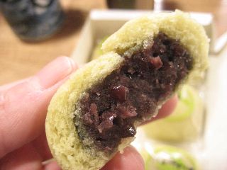 コージーコーナーのシュークリーム。いままで大きいシュークリーム[ 2004-04-22 ]だけだったのが新商品で小さいサイズのシュークリームも作ったんだそうです。抹茶味。