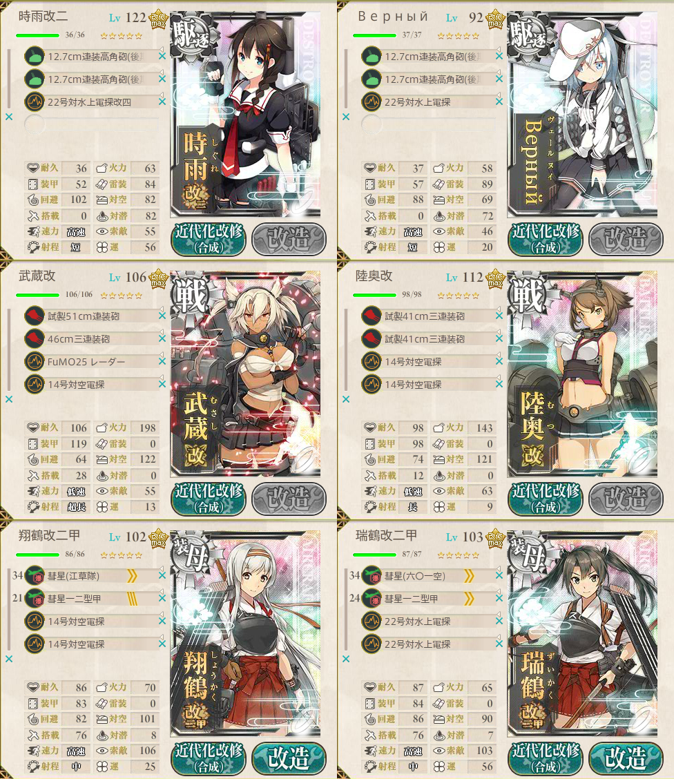 主力艦隊も道中支援も決戦支援も全員二重以上のキラ付けしたけど、大破するときは大破するので結局祈るほかない。