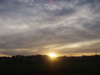 家を出た直後はもっと空がだいだい色で、まさに朝焼けの風景だったのだけどそれは撮影しなかった。もったいないことしたな。