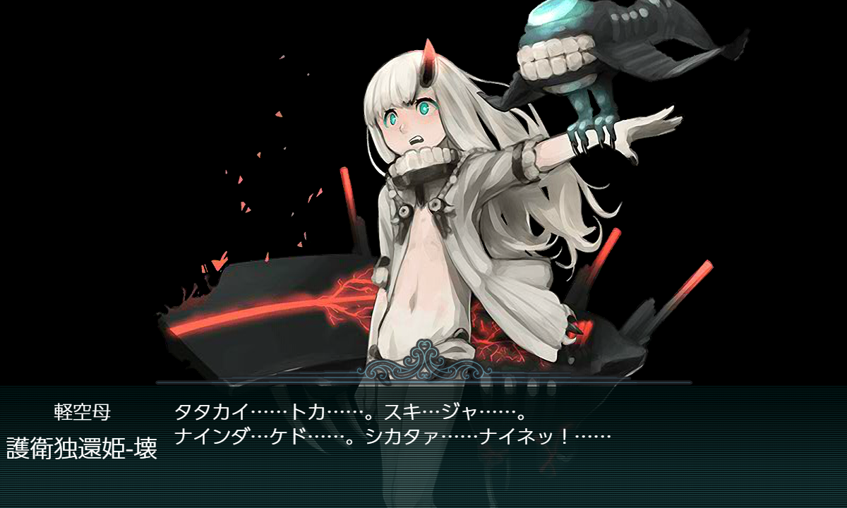 軽空母の姫級の特徴として、夜戦時に探照灯を灯した時だけ夜戦攻撃してくるという特性がある。夜戦カットイン狙いの場合でも探照灯ではなく照明弾主体のほうがいいだろう。